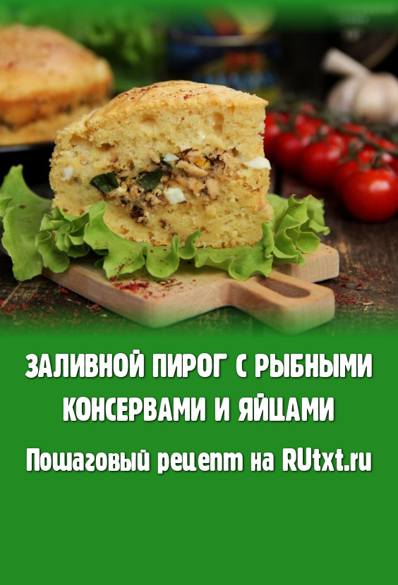 Выпекать заливной пирог с рыбными консервами и яйцами в разогретой духовке минут 45-50 (до золотистого цвета) при температуре 180 градусов.