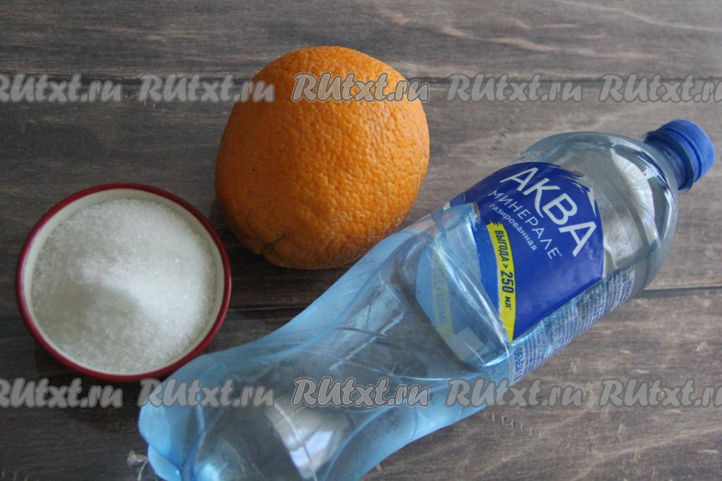 Подготовить продукты. Крупный апельсин тщательно вымыть. Газированную воду лучше брать хорошо охлаждённую, поэтому её желательно заранее поставить в холодильник.