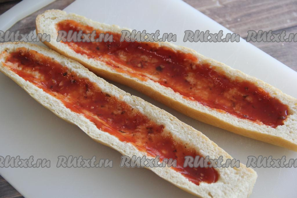Из багета можно достаточно быстро приготовить вкусную, сытную и аппетитную пиццу. В роли начинки можно использовать любое отварное мясо, колбаску или ветчину и, конечно, сыр. Овощи тоже выбирайте по вкусу (например, можно добавить помидоры и маринованный огурец). Пицца в багете с сочной начинкой и хрустящей корочкой станет отличным перекусом для вас и ваших близких!