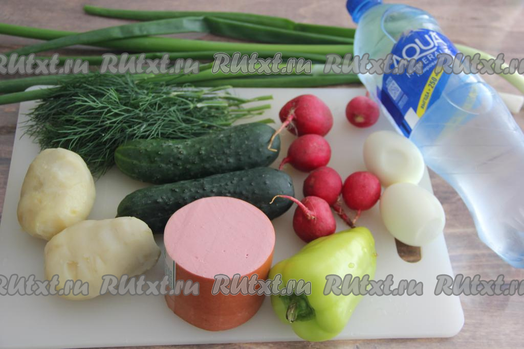 В жаркие дни можно приготовить сытную, аппетитную окрошку с колбасой, заправленную газированной минеральной водой. Рецепт неоднократно проверенный и очень удачный. Главное - взять качественную колбаску, а овощи и зелень должны быть свежайшими. Газированную воду следует предварительно хорошо охладить в холодильнике, тогда ваша окрошка будет по-настоящему вкусной, сытной и супер освежающей.