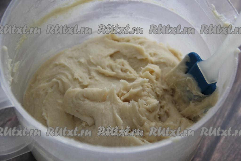 Постепенно добавляя яйца, нам нужно добиться получения тягучего, однородного, не густого теста, как на фото.