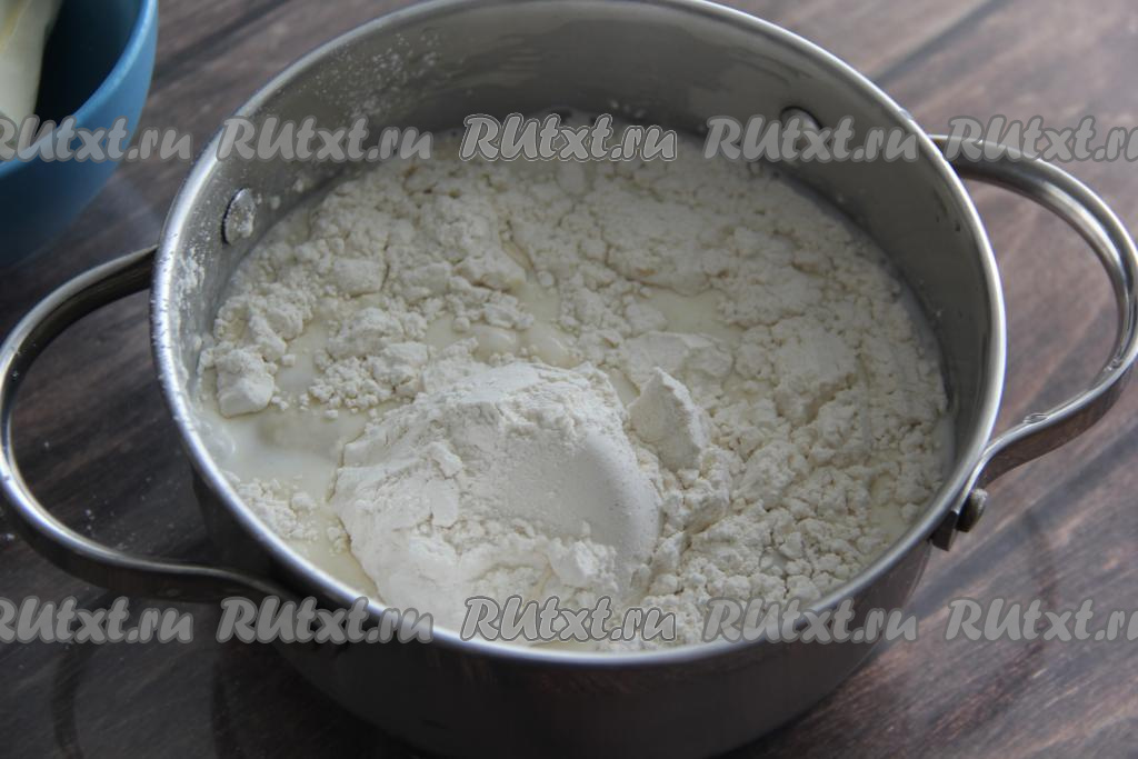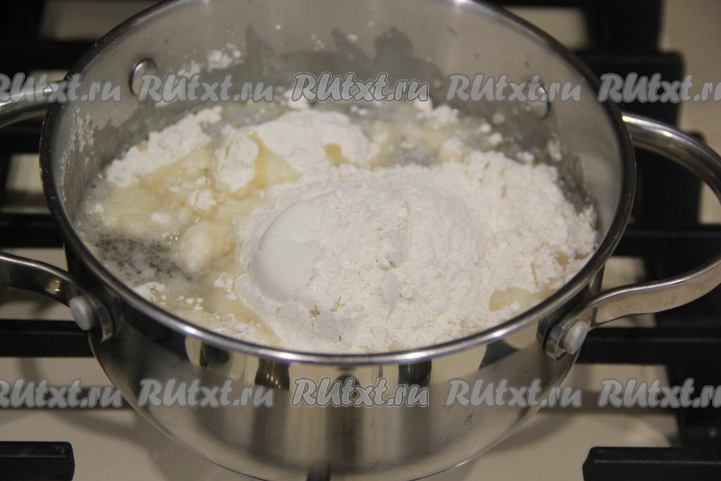 Всыпать муку в кипящую массу.