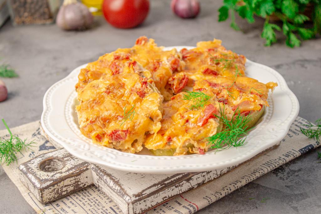 Готовое блюдо достаньте из духовки. Аппетитные кружочки кабачков, запечённые под сочной начинкой из помидоров и сыра, лучше всего подавать тёплыми. Это простое, вкусное блюдо отлично впишется в повседневное меню, советую приготовить!