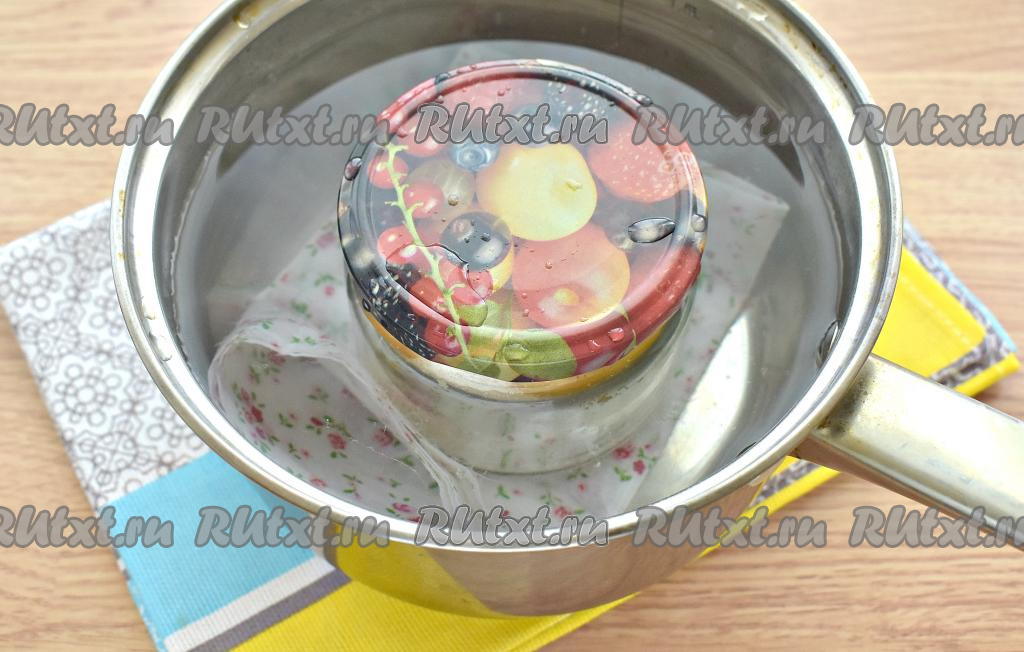 После стерилизации аккуратно, чтобы не обжечься, достаём банки из воды и тщательно закручиваем (или закатываем) крышки. Переворачиваем банки на бок, чтобы проверить герметичность крышек.