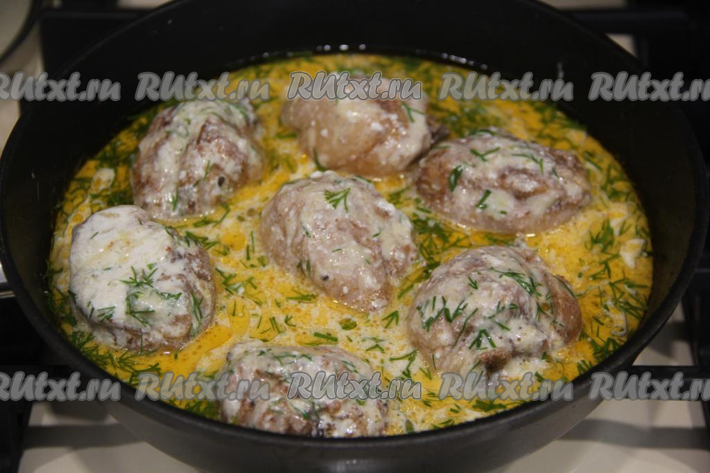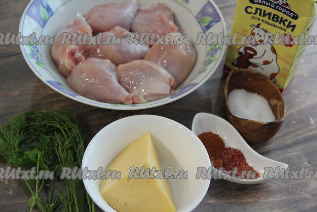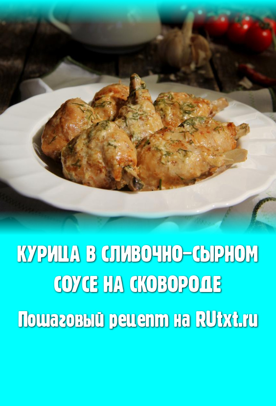 После того как кусочки курицы протушатся в воде минут 30, влить в сковороду сливочно-сырный соус и томить курочку на медленном огне под крышкой 10-15 минут.
