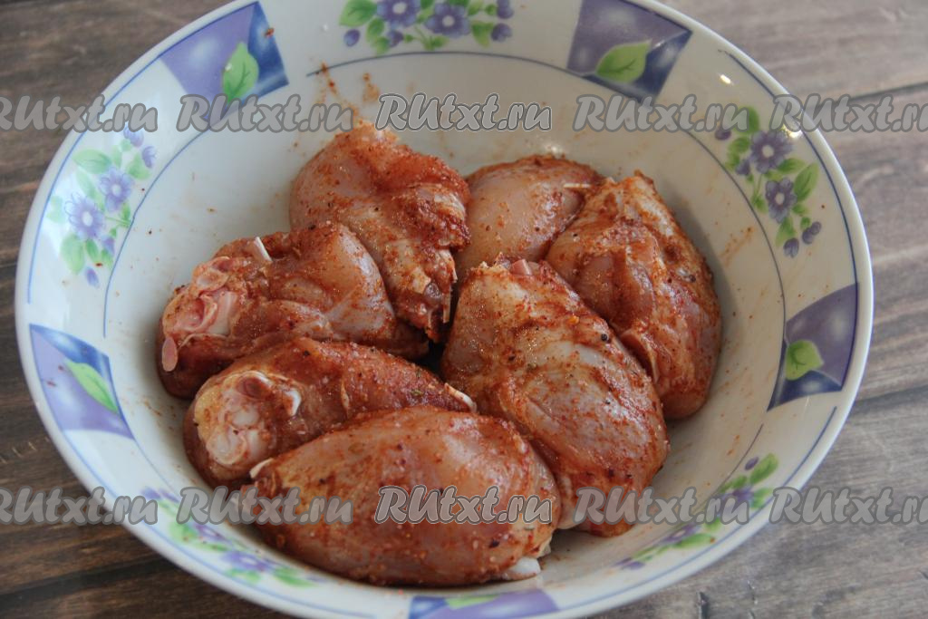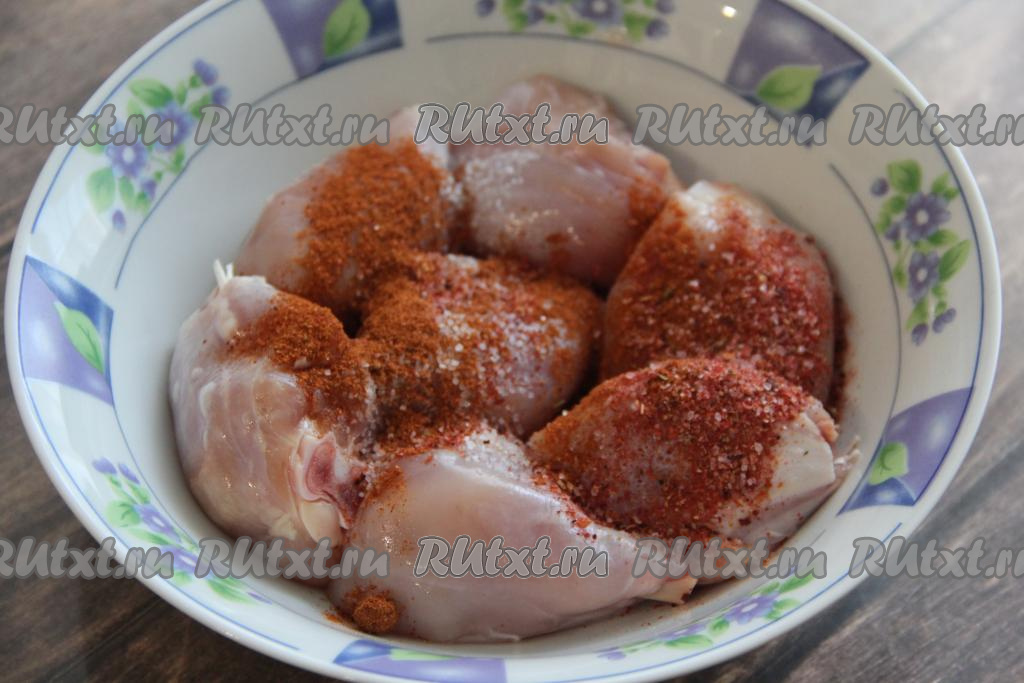Добавить к курице соль и специи по вкусу (я добавила копчёную паприку).