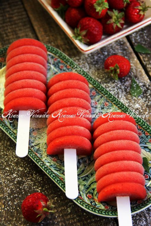 Яркий, вкусный, освежающий фруктовый лёд, приготовленный из клубники в домашних условиях, достать из формочек и подать к столу. Уверена, такое клубничное мороженое понравится всей семье!