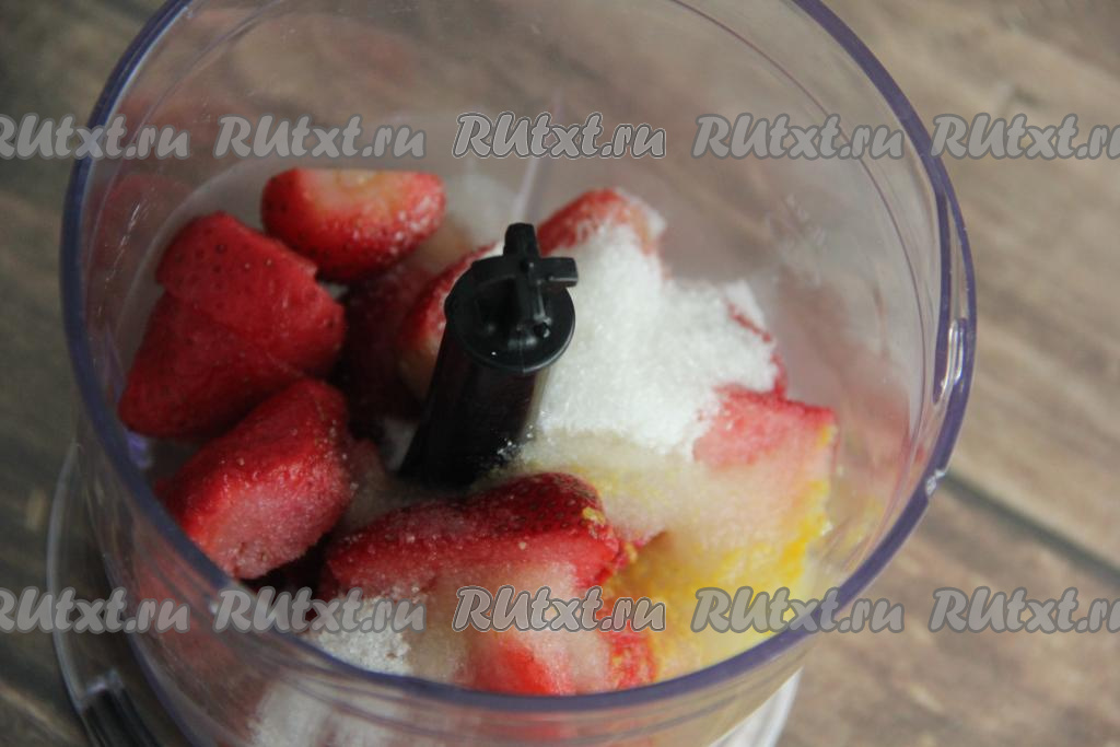 С лимона снять 1/3 чайной ложки цедры, стараясь не затрагивать, находящийся под ней белый слой. Выдавить из лимона 1-2 чайных ложки лимонного сока. 200 грамм чистых ягод выложить в чашу блендера.