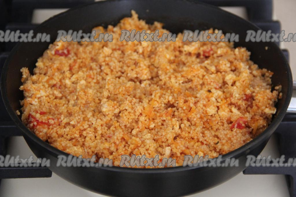 Затем перемешать кус-кус с фаршем.