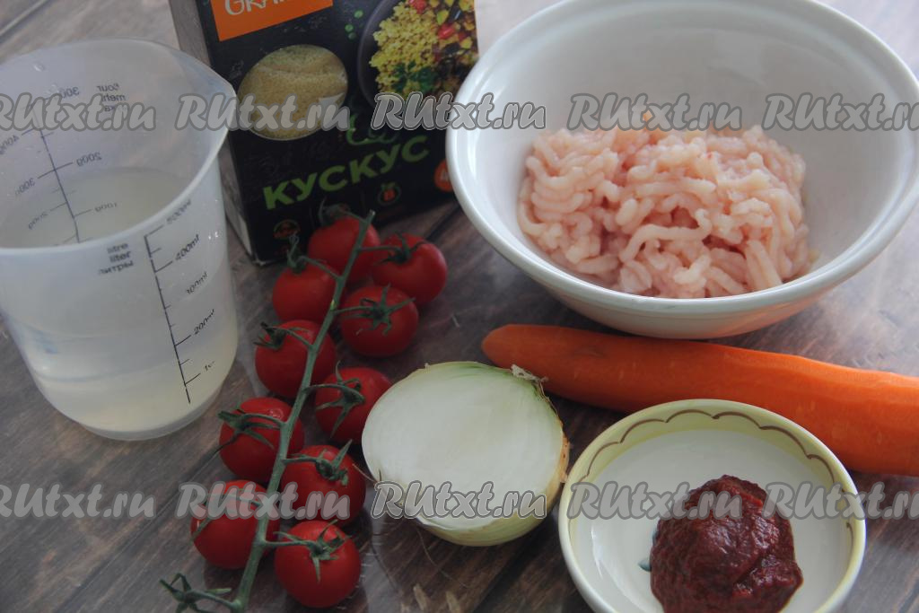 Предлагаю приготовить на сковороде простое, вкусное и сытное блюдо - кус-кус с фаршем. Кус-кус получается рассыпчатым, пропитывается мясными сока. Это аппетитное блюдо станет отличным обедом или ужином для вас и ваших близких. Мясной фарш можно взять любой, у меня - куриный. Просто, вкусно и сытно, попробуйте!