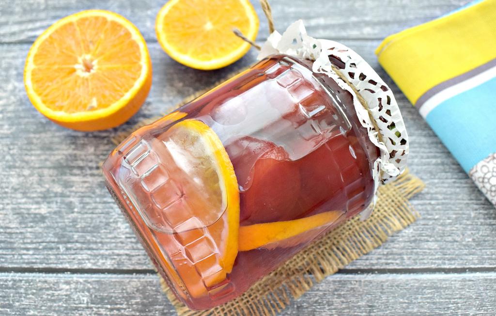 Из слив можно сделать на зиму самые разнообразные заготовки: варенье, джемы, конфитюры, повидло и, конечно же, компоты. Предлагаю в классический рецепт приготовления компота из слив на зиму внести дополнение в виде долек апельсина. Компот из слив с апельсином получается сладким, вкусным и ароматным. Такому напитку будут рады и дети, и взрослые. Количество ингредиентов дано на банку объёмом 1 литр.