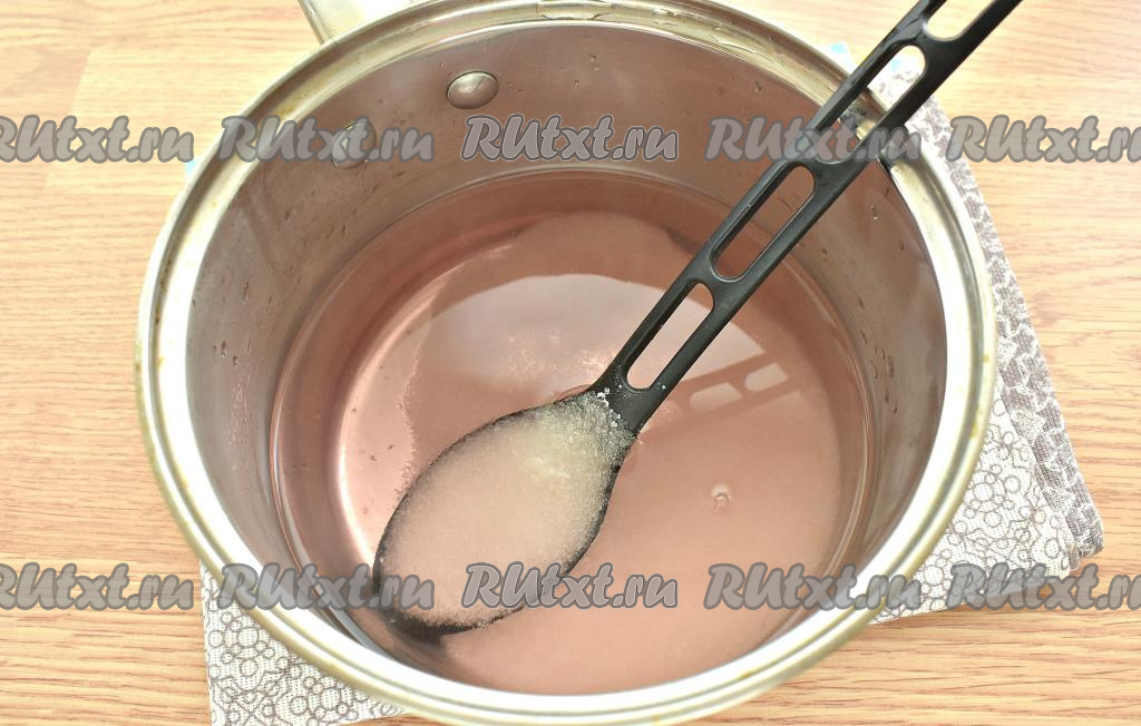 Аккуратно воду из банки сливаем в ковшик (или кастрюльку) так, чтобы и сливы, и ломтики апельсина остались в банке. Удобно слить воду из банки, надев на неё крышку с отверстиями. В воду, слитую из банки, добавляем сахар, ставим на огонь, доводим до кипения и провариваем сироп, помешивая, 1-2 минуты (сахар должен полностью раствориться в сиропе).