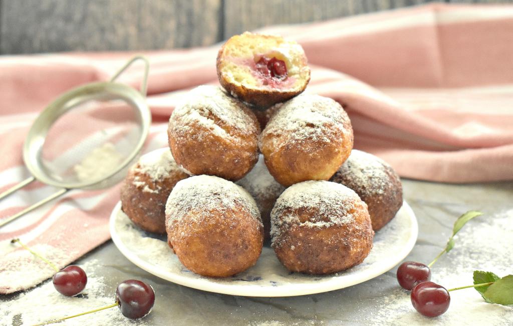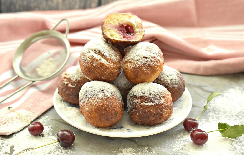 Предлагаю приготовить мягкие, вкусные, нежные творожные пончики с начинкой из вишни. Такая выпечка станет и отличным завтраком, и замечательным перекусом, и приятным дополнением к ужину. Подавать такие пончики можно со сладкими соусами (например, вареньем, сгущёнкой) или просто присыпав их сахарной пудрой.