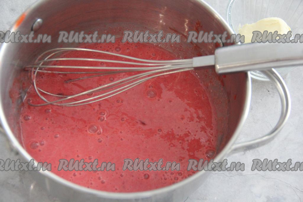 Тщательно перемешать ягодную массу венчиком, поставить на средний огонь.