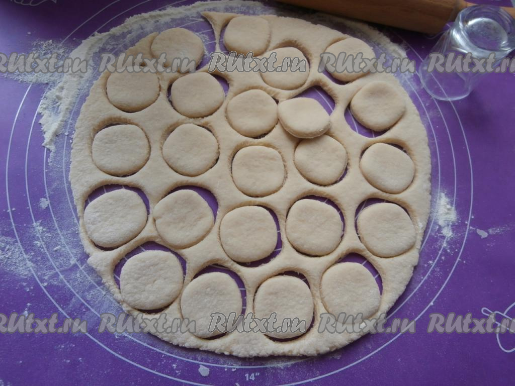Замешанное тесто для пончиков раскатать в лепёшку толщиной около 0,5 сантиметра.