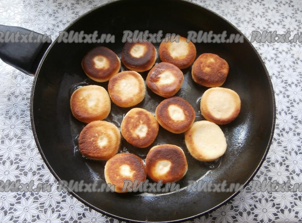 Затем пончики перевернуть и дать им зарумяниться с другой стороны.