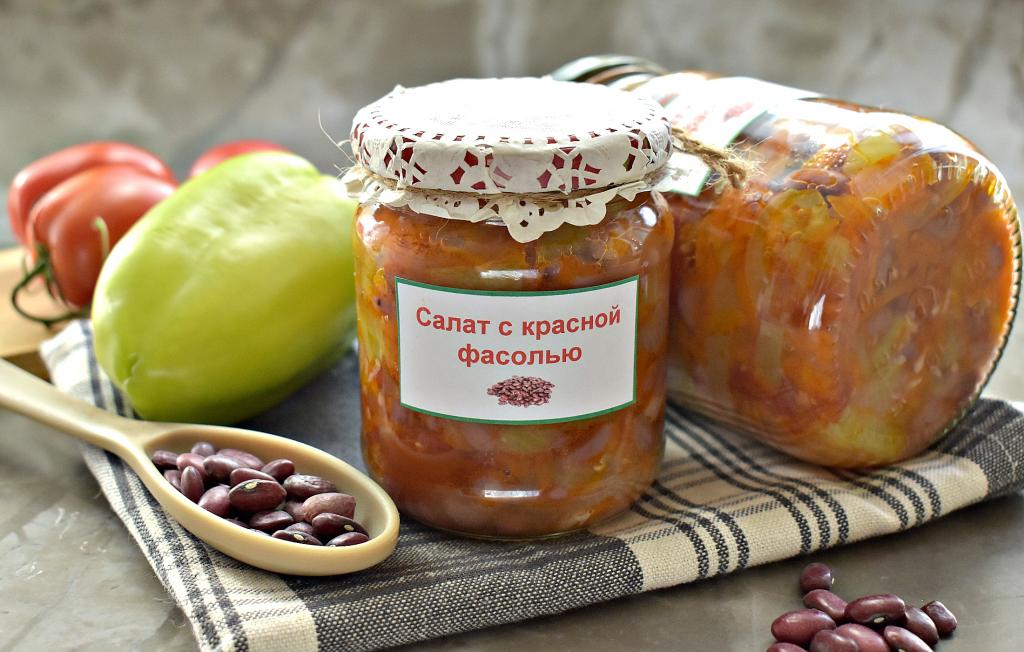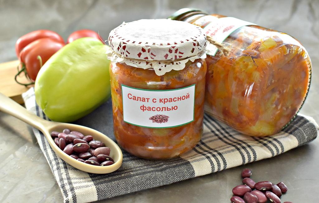 Салат с красной фасолью перекладываем в заранее простерилизованные банки, закручиваем (или закатываем) прокипячёнными крышками. Банки с салатом ставим дном вверх, накрываем одеялом (или тёплой шалью, или пледом) и оставляем до полного остывания (я оставляю на сутки), а затем переставляем на хранение в погреб или холодную кладовую.