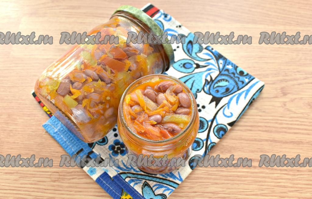Предлагаю приготовить на зиму вкусный, аппетитный, ароматный салат с красной фасолью и овощами. Эту заготовку можно подать в качестве холодной закуски. А ещё этот салат можно добавить в процессе варки супа и у вас получится насыщенное первое блюдо. Из предложенного количества ингредиентов получается 0,75 литра сытного и вкусного салата.