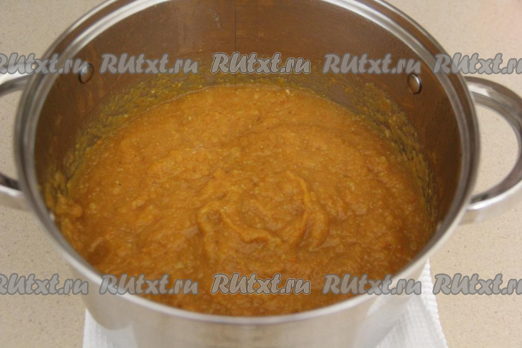 Пробить овощи погружным блендером в овощное пюре.