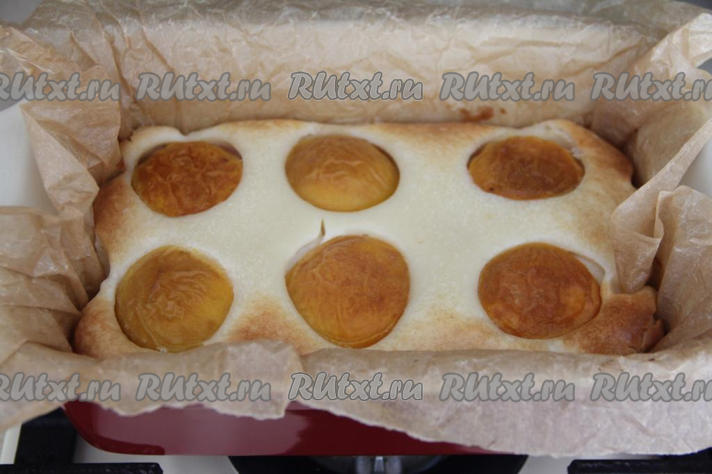 Выпекать творожную запеканку с абрикосами минут 45-50 в разогретой духовке при температуре 180 градусов.