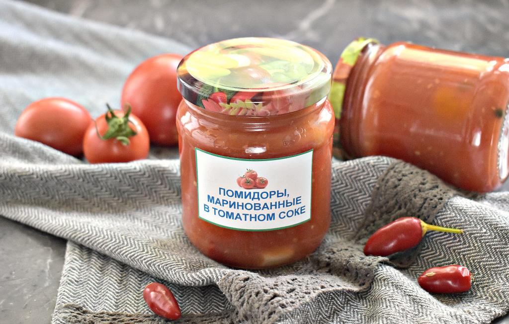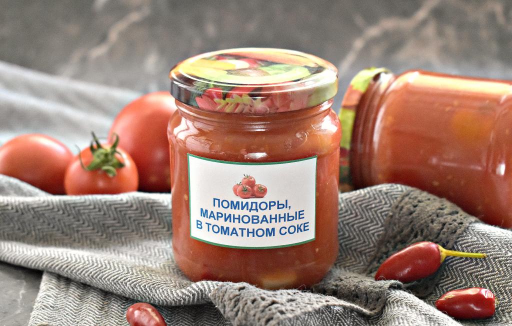 Готовый томатный сок снимаем с огня. Сразу банки с помидорами заполняем до самого верха горячим соком и закручиваем (или закатываем) крышками. Банки с помидорами переворачиваем вверх дном, укрываем со всех сторон пледом (или одеялом). Полностью остужаем (я оставляю на сутки), а затем переставляем в прохладное место (например, в погреб или в подвал) на хранение.