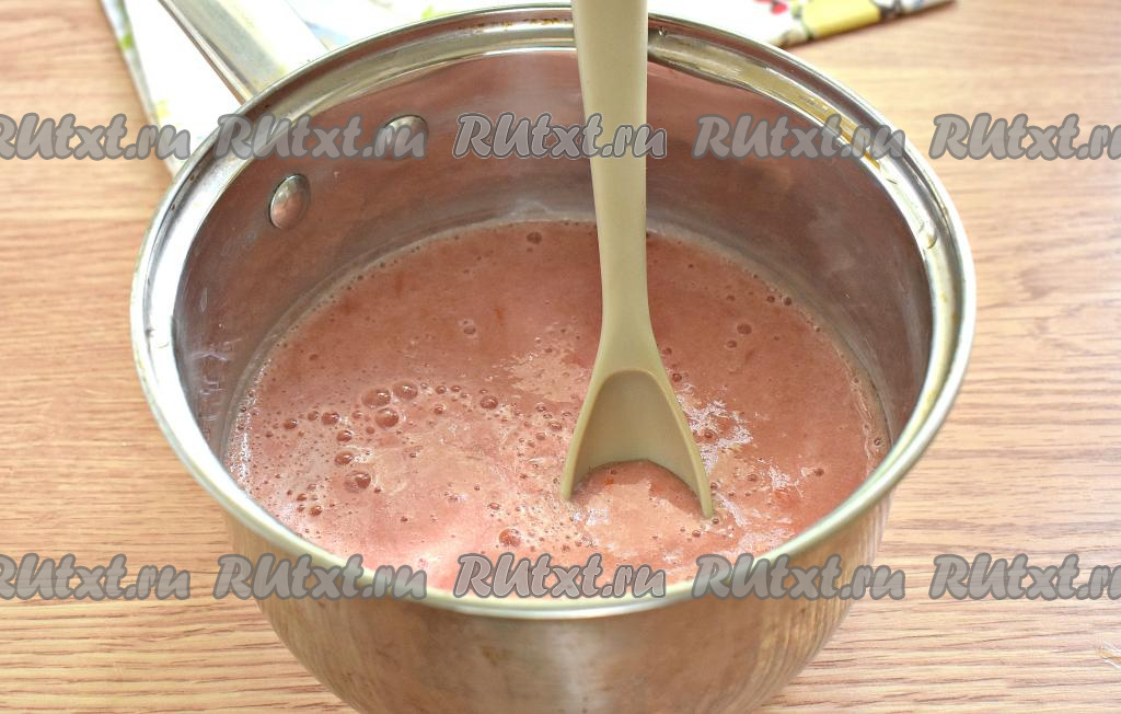 Кусочки помидоров измельчаем до состояния сока в измельчителе (или погружным блендером, или с помощью мясорубки).
