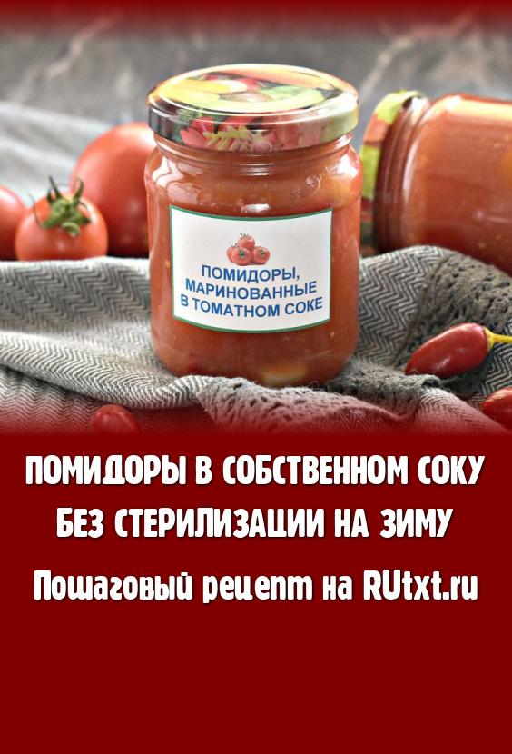 Вот так достаточно просто, даже без стерилизации банок с помидорами и томатным соком, можно приготовить отличную заготовку на зиму. Уверена, помидоры, приготовленные в собственном соку, многим придутся по вкусу!