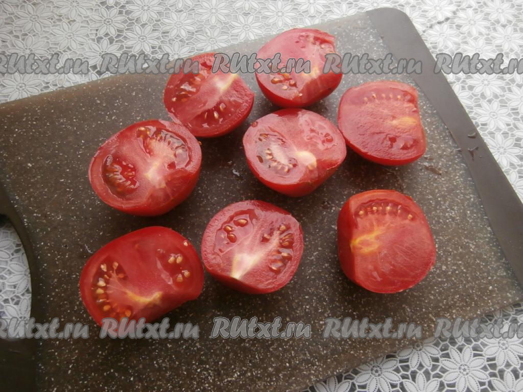 Помидоры помыть, разрезать на 2 части.