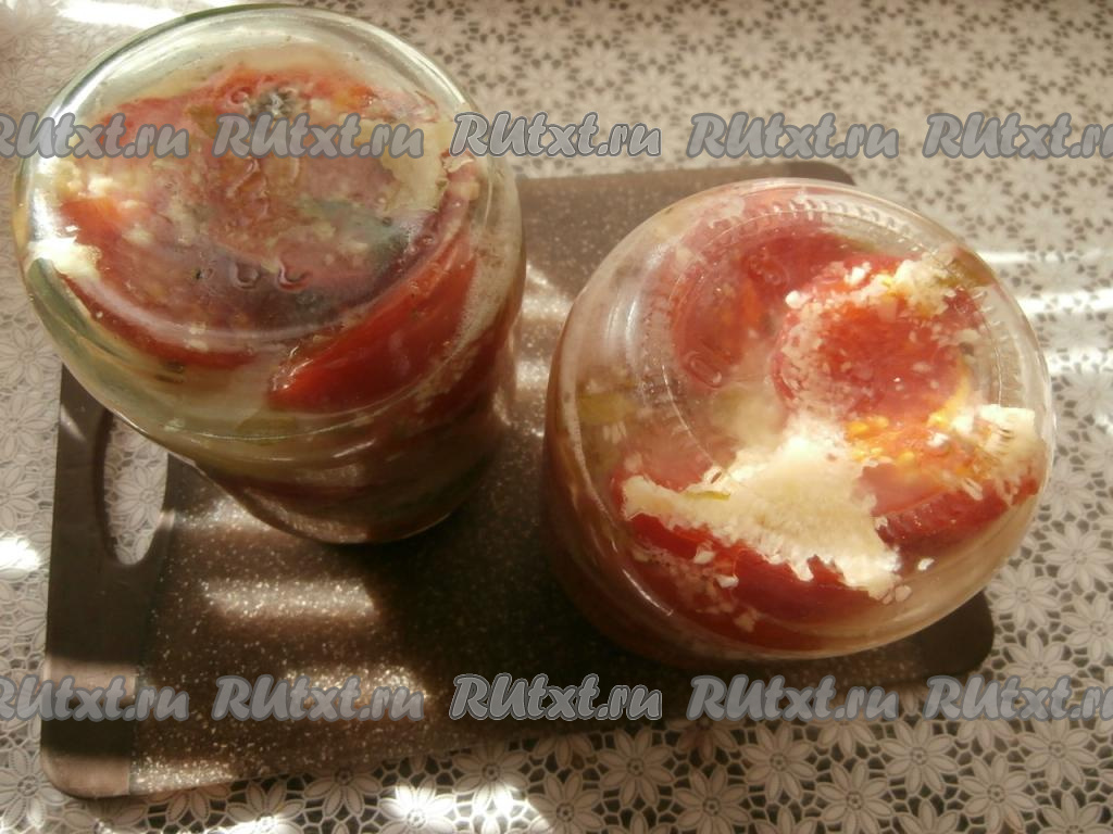 Банки с половинками помидоров закатать (или закрутить) крышками. Поставить баночки вверх дном и укутать их в одеяло, оставить до полного остывания, а затем переставить на хранение.