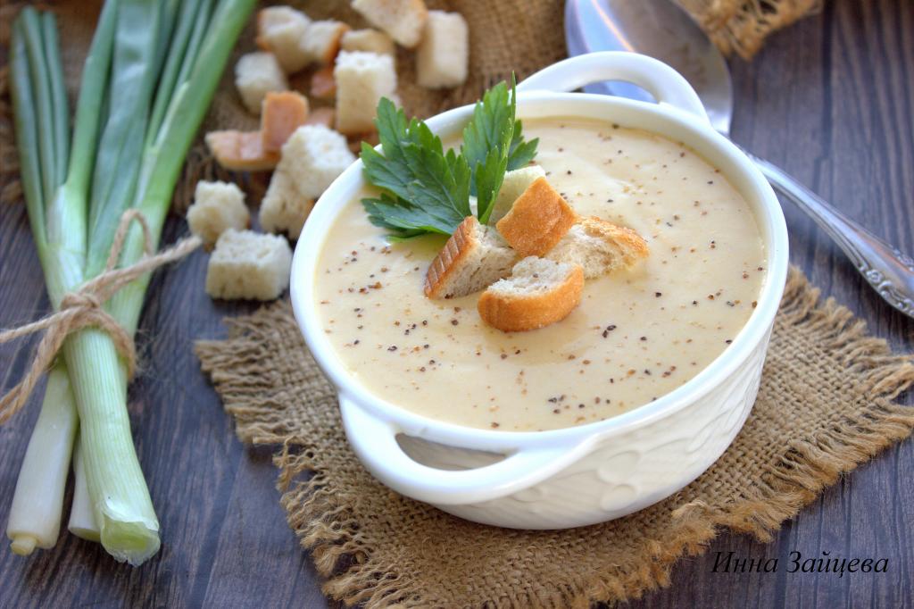 Возвратить кастрюлю с крем-супом на плиту, поставить на средний огонь, помешивая, довести до кипения (не кипятить, иначе сливки могут свернуться). Выключить огонь, накрыть суп крышкой и дать настояться 5-10 минут.