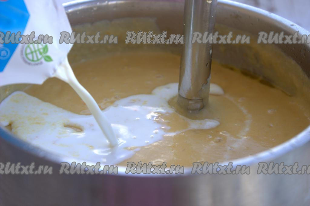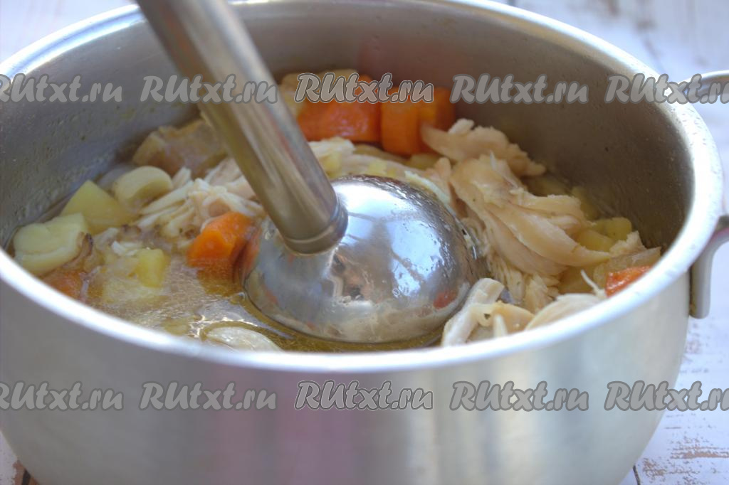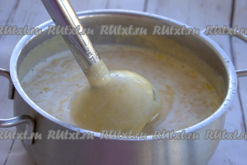 Содержание кастрюли пробить погружным блендером до однородной консистенции.