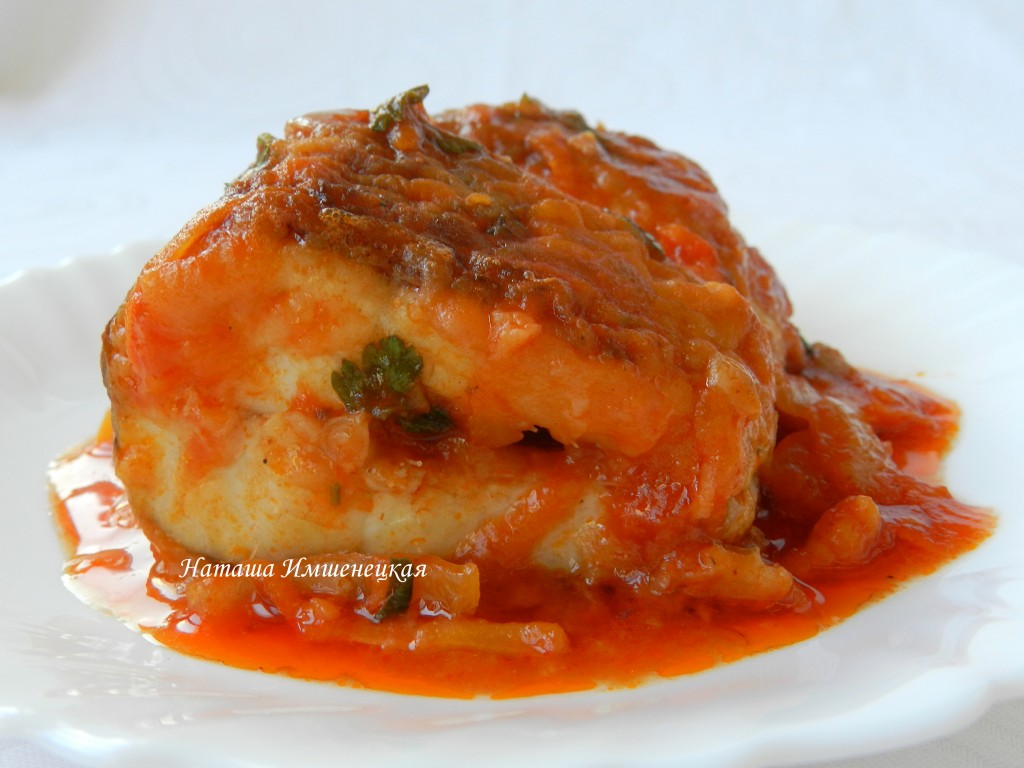 Для приготовления рыбы, тушеной в томатном соусе, понадобится: