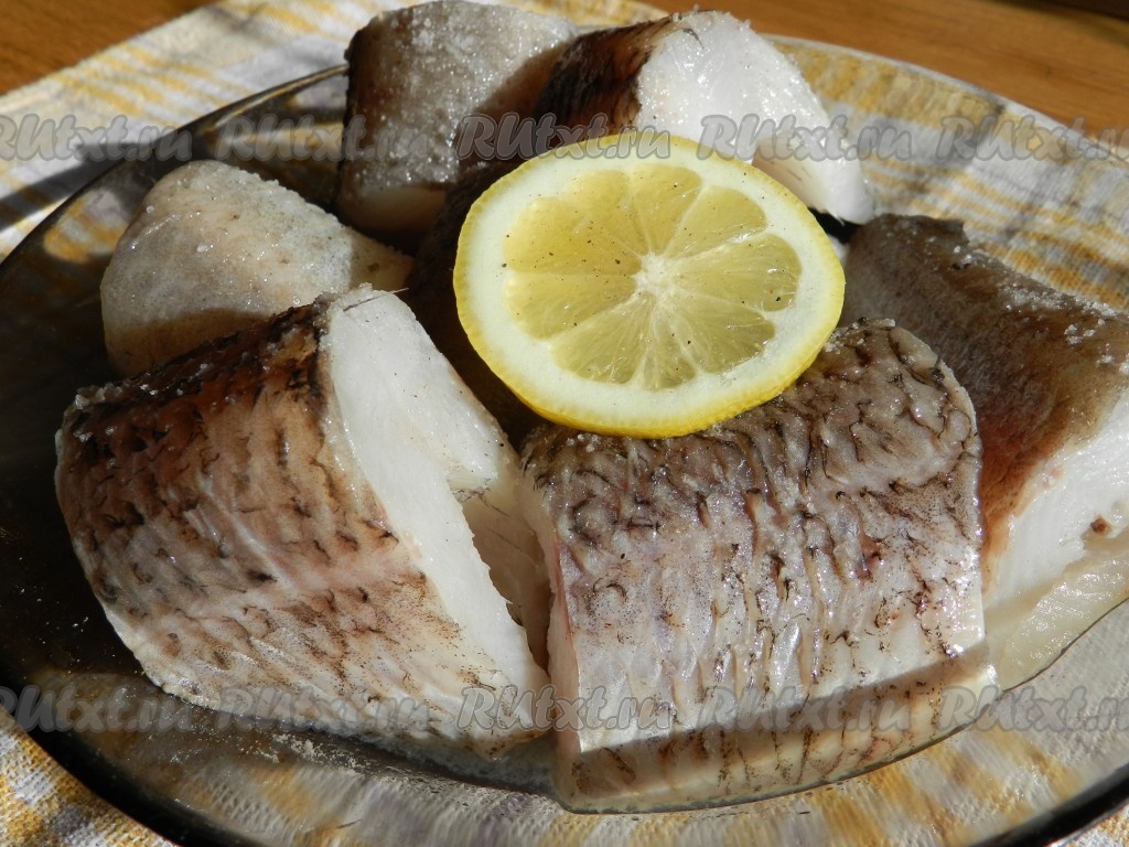 Рыбу вымыть, удалить, если есть, внутренности и плавники. Нарезать на порционные кусочки, полить лимонным соком, посыпать солью и перцем.