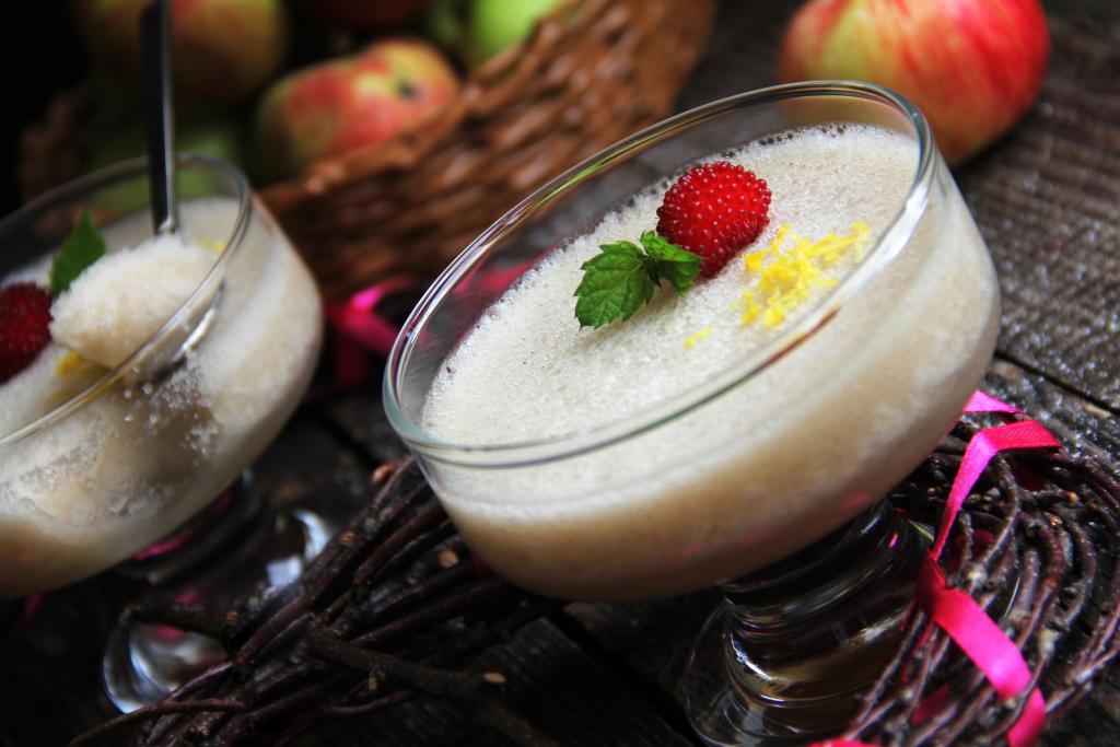 Разлить массу по креманкам (или фужерам, или по силиконовым формочкам) и поставить в холодильник, как минимум, на 5 часов, а лучше - на ночь (до полного застывания яблочного желе).