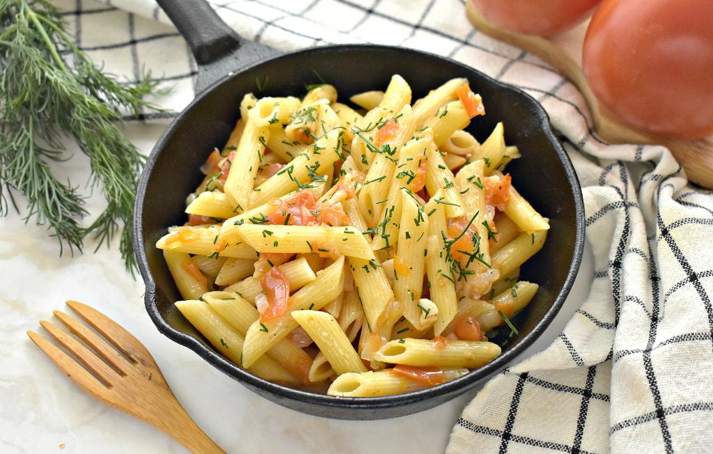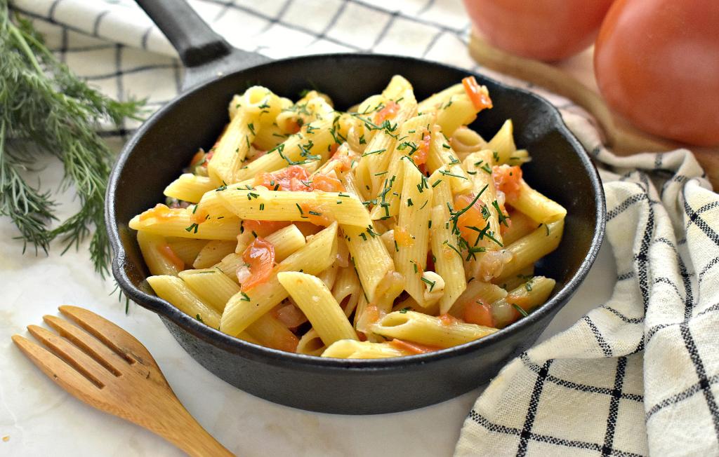 Макаронные изделия достаточно просто приготовить на сковороде так, чтобы они получились и вкусными, и сытными, и аппетитными. Сегодня предлагаю потушить на сковороде макароны с помидорами и луком. Меня этот рецепт привлекает прежде всего тем, что блюдо полностью готовится на сковороде и не надо использовать дополнительную посуду (например, кастрюлю, дуршлаг). Вкусные, аппетитные макароны с луком и помидорами можно подать к столу и в качестве гарнира к мясу, колбасе или сосискам, и в качестве основного блюда.