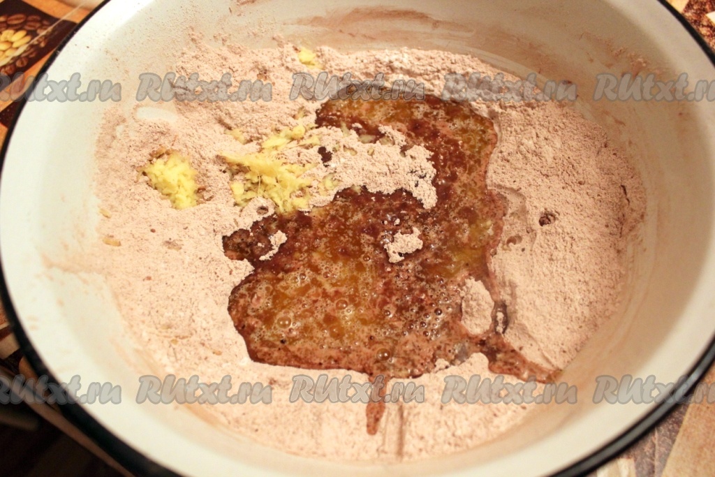 Маргарин растопить, имбирь натереть и добавить к остальным ингредиентам.