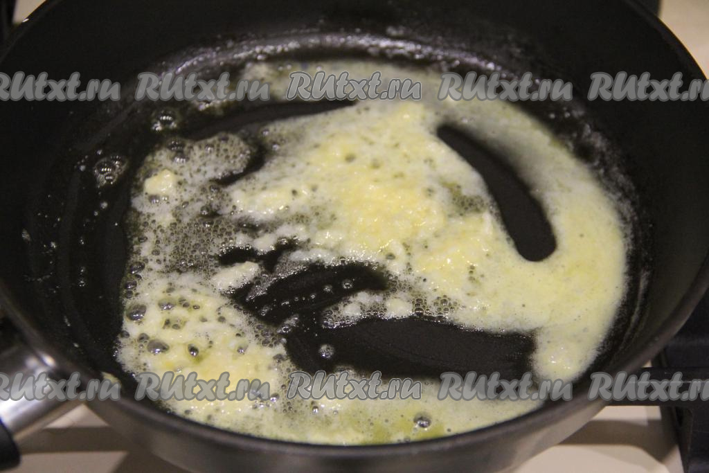 Сливочное масло растопить на сковороде. Выложить мелко нарезанный чеснок и обжаривать его на среднем огне 1 минуту, иногда помешивая.