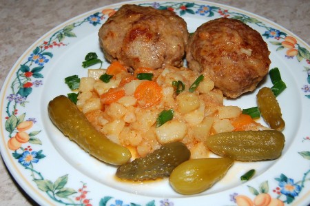 Через 30 минут наши мясные биточки готовы. Можно рассаживаться за стол и приниматься за трапезу.