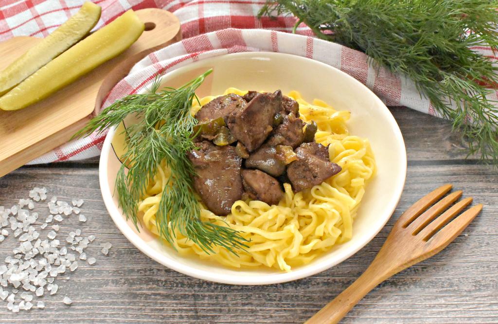 Периодически в повседневное меню я включаю блюда из субпродуктов. Предпочтение я отдаю куриной печени. В этот раз предлагаю пожарить на сковороде куриную печень с солёными огурцами. Огурчики отлично дополняют печёнку, поэтому блюдо получается вкусным, сочным. Главное - не передержать печень на сковороде, и тогда она выйдет нежной и мягкой. К столу куриную печёнку, жареную с солёными огурцами, можно подать с картошкой, рисом или макаронами.