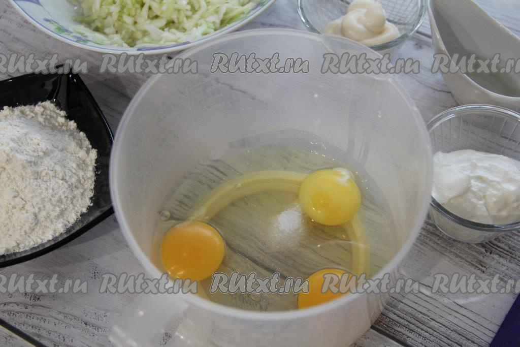 Соединить яйца и соль, взбить венчиком до однородности.