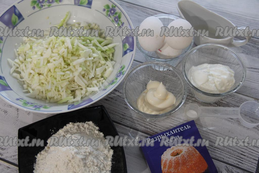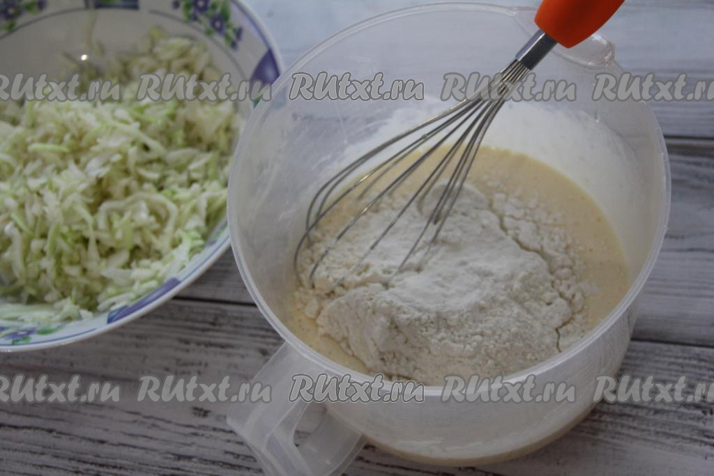 Добавить в тесто нарезанную капусту, перемешать тесто для пирога.