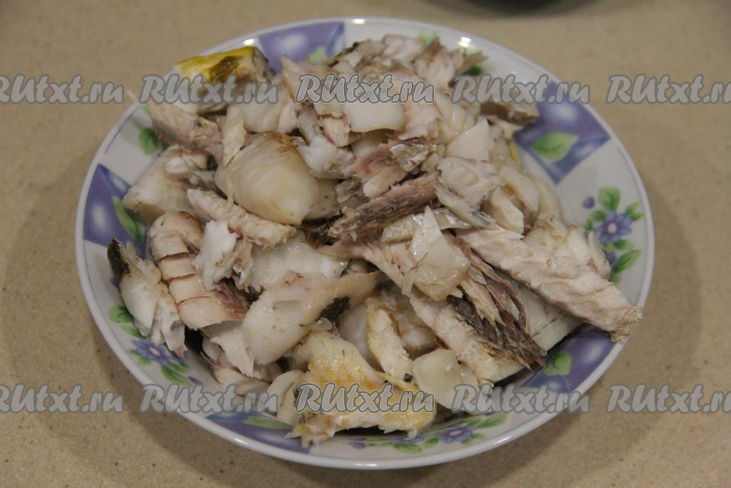 Отделить мякоть рыбы от костей и шкурки. Для приготовления крокетов потребуется 500 грамм отварного филе.