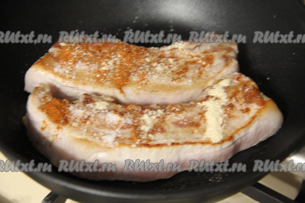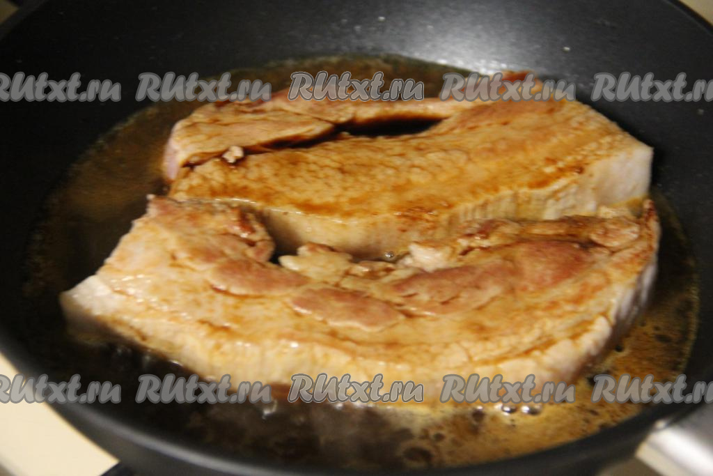 Обжарить грудинку с двух сторон до золотистого цвета на среднем огне.