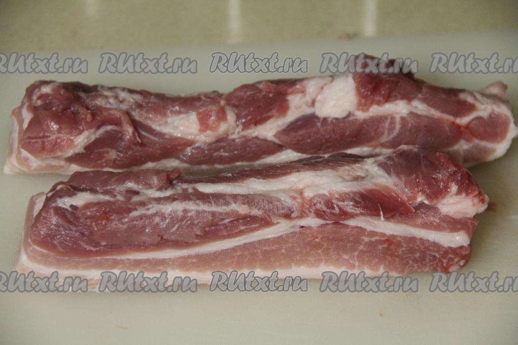 Свиную грудинку промыть и обсушить бумажным полотенцем. У меня было два кусочка.