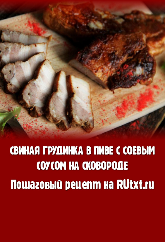 Влить пиво и соевый соус. Накрыть сковороду крышкой и томить свиную грудинку 30 минут на небольшом огне, периодически переворачивая.