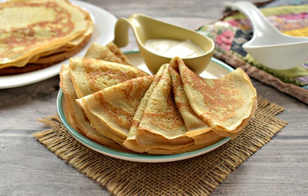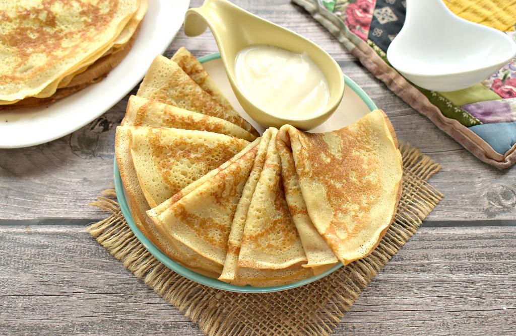 К столу блины, замешанные на горячем молоке, я подала со сметаной. Получилось сытно, вкусно и сытно!