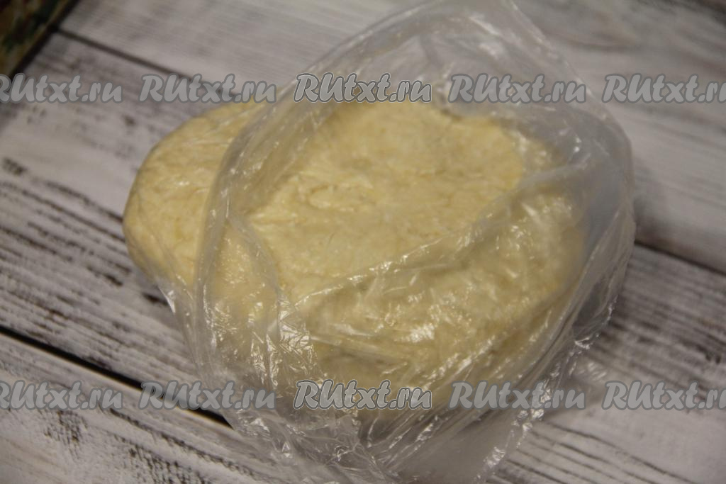Замесить нежное и пластичное песочное тесто, не липнущее к рукам. Поместить тесто в пакет и убрать в холодильник на час.