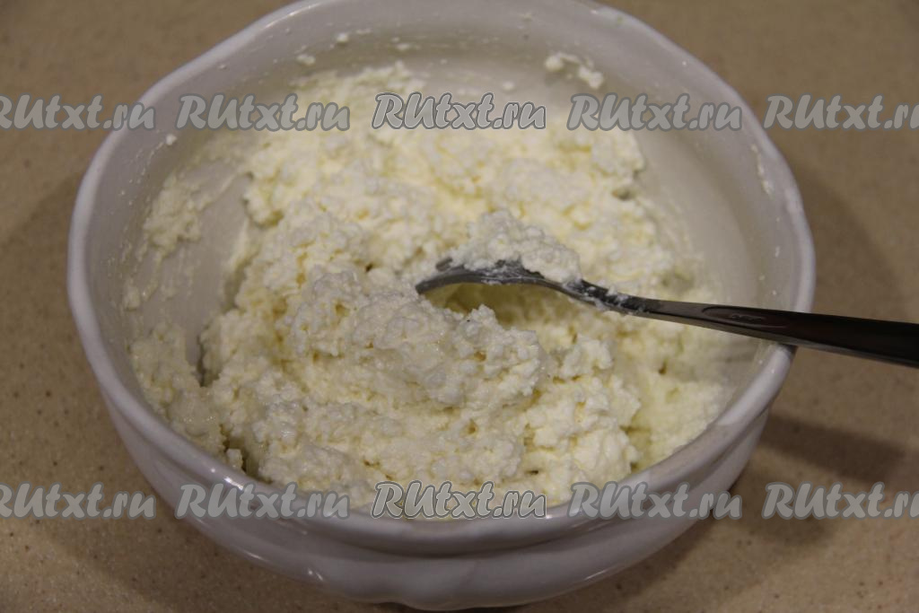 Перемешать творожную массу вилкой.