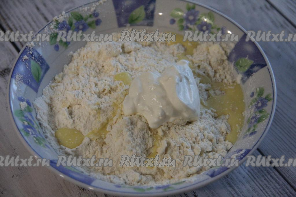Замесить мягкое и пластичное песочное тесто, долго тесто вымешивать не нужно, его нужно просто собрать в шар.