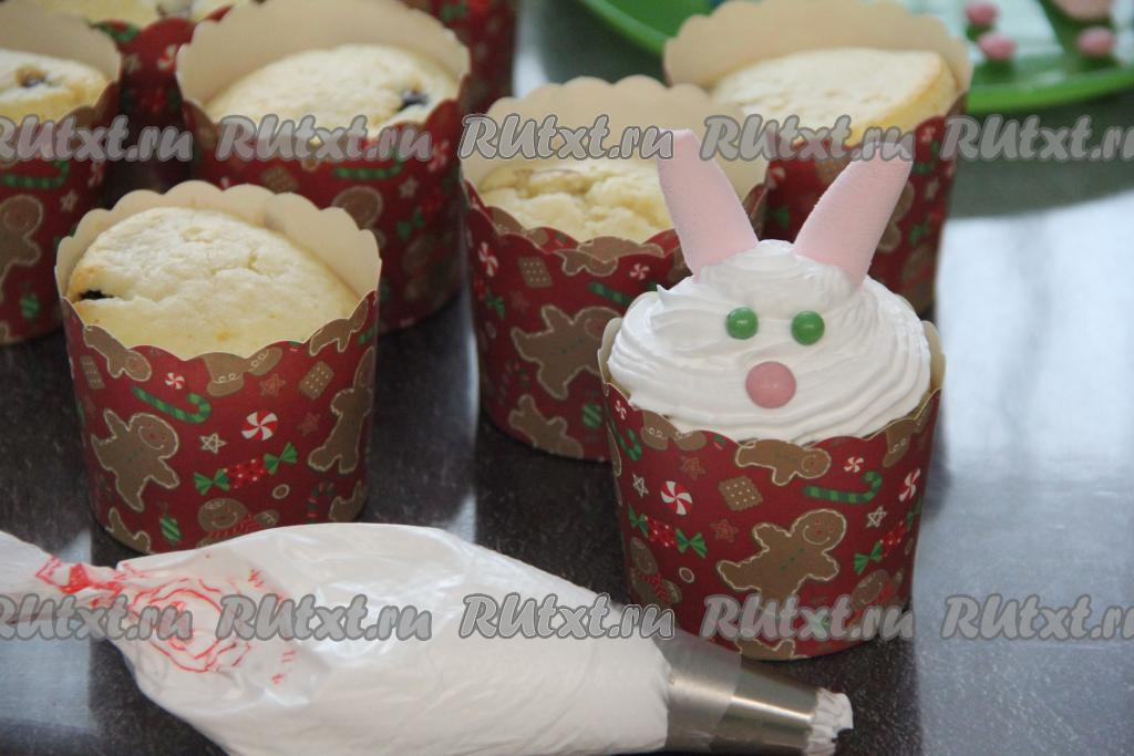 Скоро Новый год, по восточному календарю наступит год Кролика. Поэтому предлагаю на праздничный стол испечь тематические капкейки в виде зайчиков. Готовится такая выпечка несложно, а получается симпатичной и очень вкусной. Украсить такие капкейки можно взбитыми сливками или крем-чизом. Ушки можно сформировать из маршмеллоу, глазки - из сахарных горошин, носик - из конфет с глазурью. Такие красивые, милые, вкусные тематические капкейки украсят праздничный стол, а детки будут от них просто в восторге!